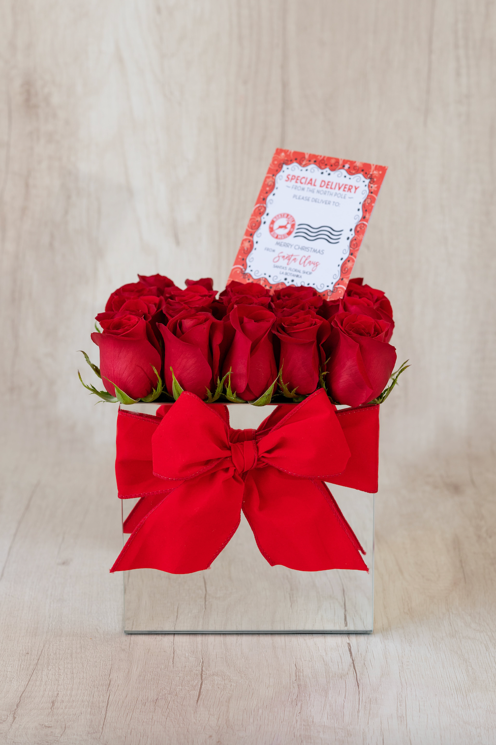 Cubo de acrílico simulado de espejo + 25 rosas rojas +